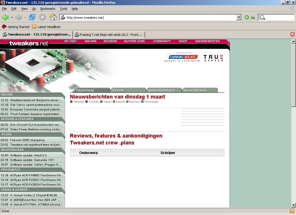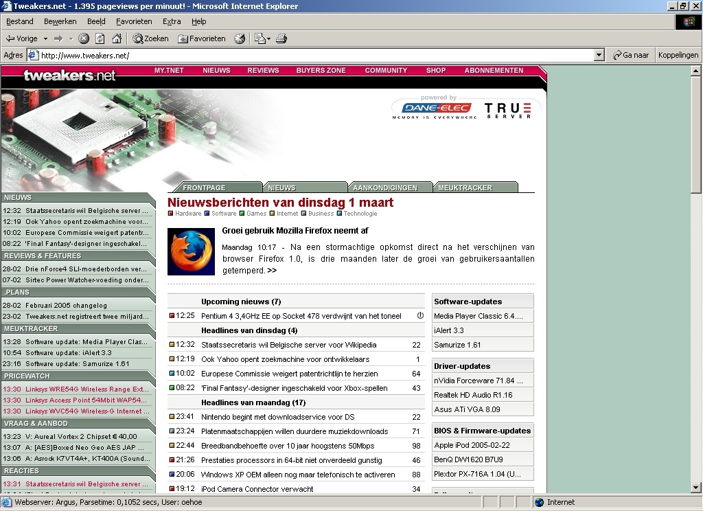 Ik weet niet of dit een probleem is met de HTML code van de pagina's, of mogelijk van mijn brouwser (de laatste IE van WIndowsXP), maar ik zou graag van een oplossing horen. Want browsen op T.net is in eens vermoeiend gewordem
