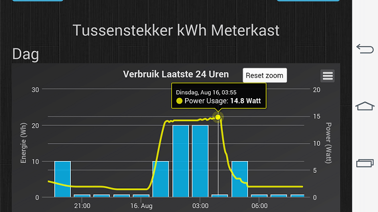 Heb met een Fibaro wall plug gekeken naar het energieverbruik: