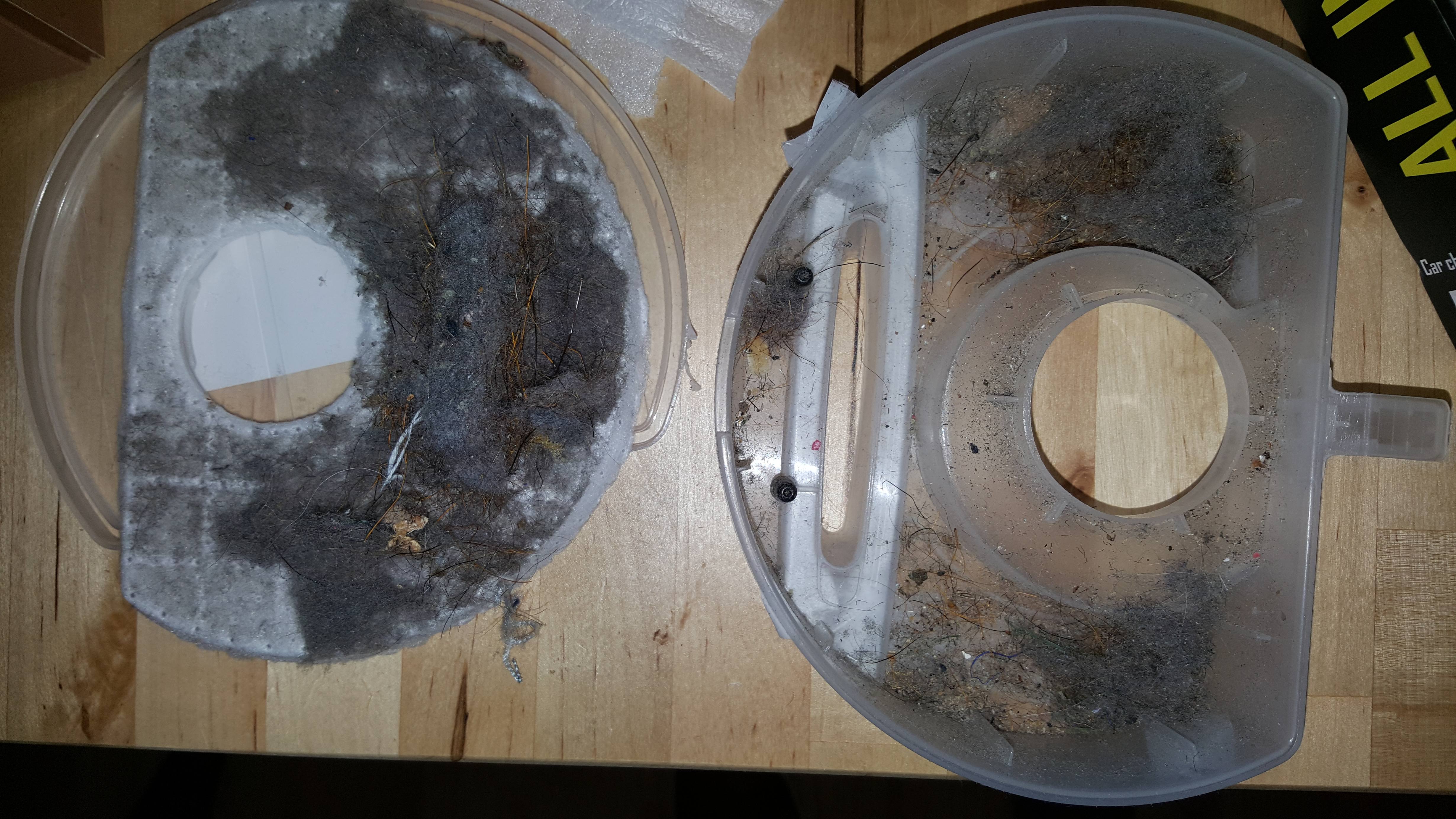 Ik heb trouwens een kleine modificatie aan het stofbakje gedaan en dat scheelt best wel! Hij lijkt dus ook wat aardig stof aan te zuigen om het stofbakje heen. Je ziet ook direct links en rechts van de zuigmond nog stof zitten dus daar zal ie nog wel aanzuigen.