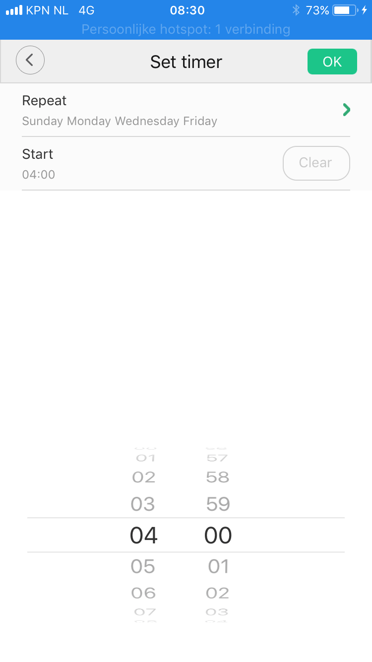 Wel even de DND mode uitzetten (ander tabje) en er zit 6 uur tijdsverschil in, dus zet hem om 10:00 uur en hij zal om 04:00 uur beginnen (iPhone app).
