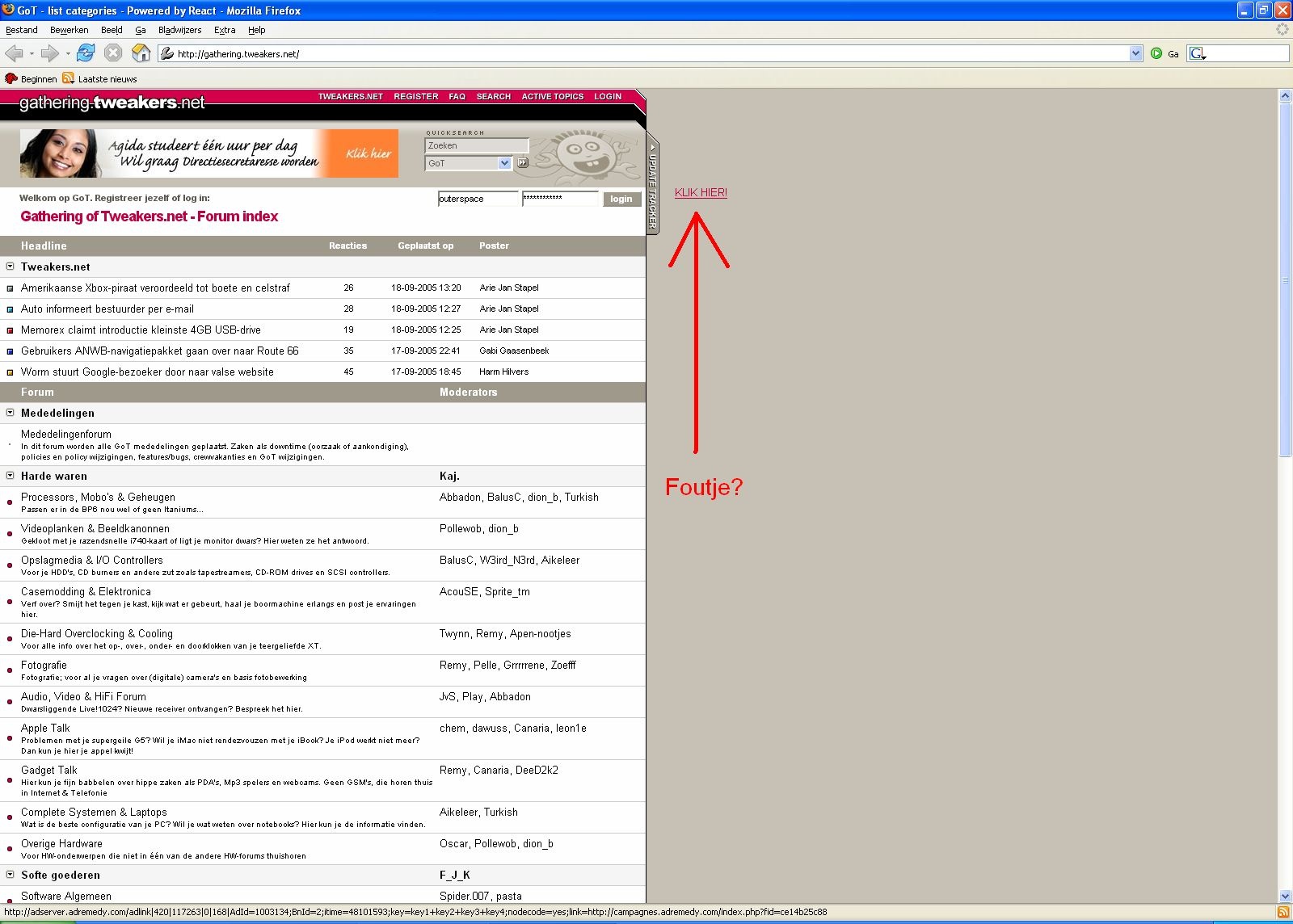 Jouw ComputerIdee ad zie ik inderdaad wel.Soultaker schreef op zondag 18 september 2005 @ 16:31:
