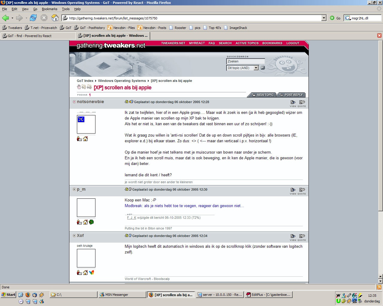 Je hoeft iig minder vaak je muis te verschuiven als je wilt omschakelen van naar boven scrollen naar naar beneden scrollen.Xof schreef op donderdag 06 oktober 2005 @ 12:51: