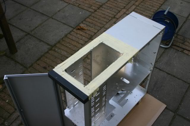 In de bovenkant heb ik een gat gemaakt voor m'n radiator, eerst goed afgetekend en daarna met de dremel aan de gang (dremel schijfjes 426)