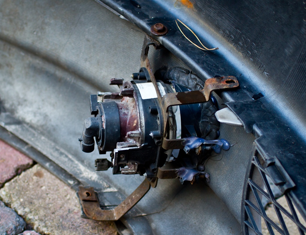 :x De andere kant zat trouwens precies zo. Die was wel makkelijker te vervangen, want het beugeltje aan de onderkant van het kapotte mistlicht was ook wat krom. Om dan het gat daarin precies uit te lijnen met het gat in de bumper en twee weerbarstige stukken keienvanger en wielkastbeschermer en dan ook nog blind een schroef erin draaien was een mooie aanleiding voor wat scheldwoorden.