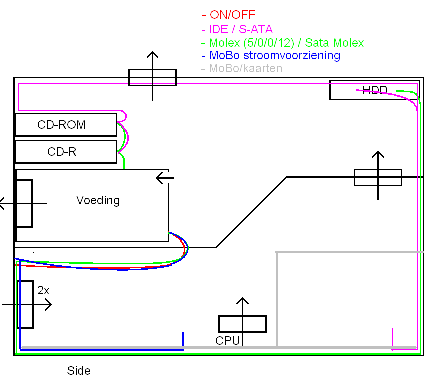 videokaart in dit plaatje ivm airflow? Die zit in een dode hoek zich lekker te warmen aan de hitte van je cpu-vuurtje.