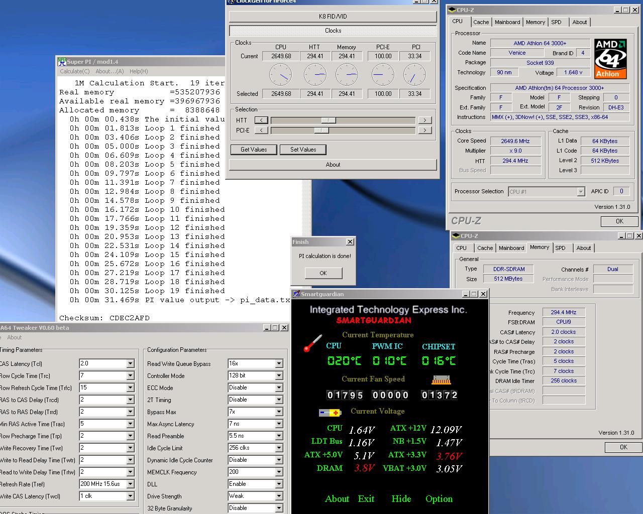 Om niet weer voor dezelfde condens problemen te komen staan als bij het de vorige poging besloot ik om toch de 90e voor een A64 kit voor de Mach II op tafel te leggen. Nventiv was toen net falliet en de prijzen voor accesoires rezen de pan uit. Als bijpassend systeem schafte ik eind 2004 een 3000+ Winchester aan met een MSI K8N Neo2. Deze CPU werd vrij snel vervangen door een 3500+ Newcastle omdat de winnie een coldbug bleek te hebben. Met die setup ben ik toen een flink aantal weken aan het prutsen geweest. Het mem was ondertussen alweer vervangen door 2x256MB Corsair XMS (met alweer BH-5 erop