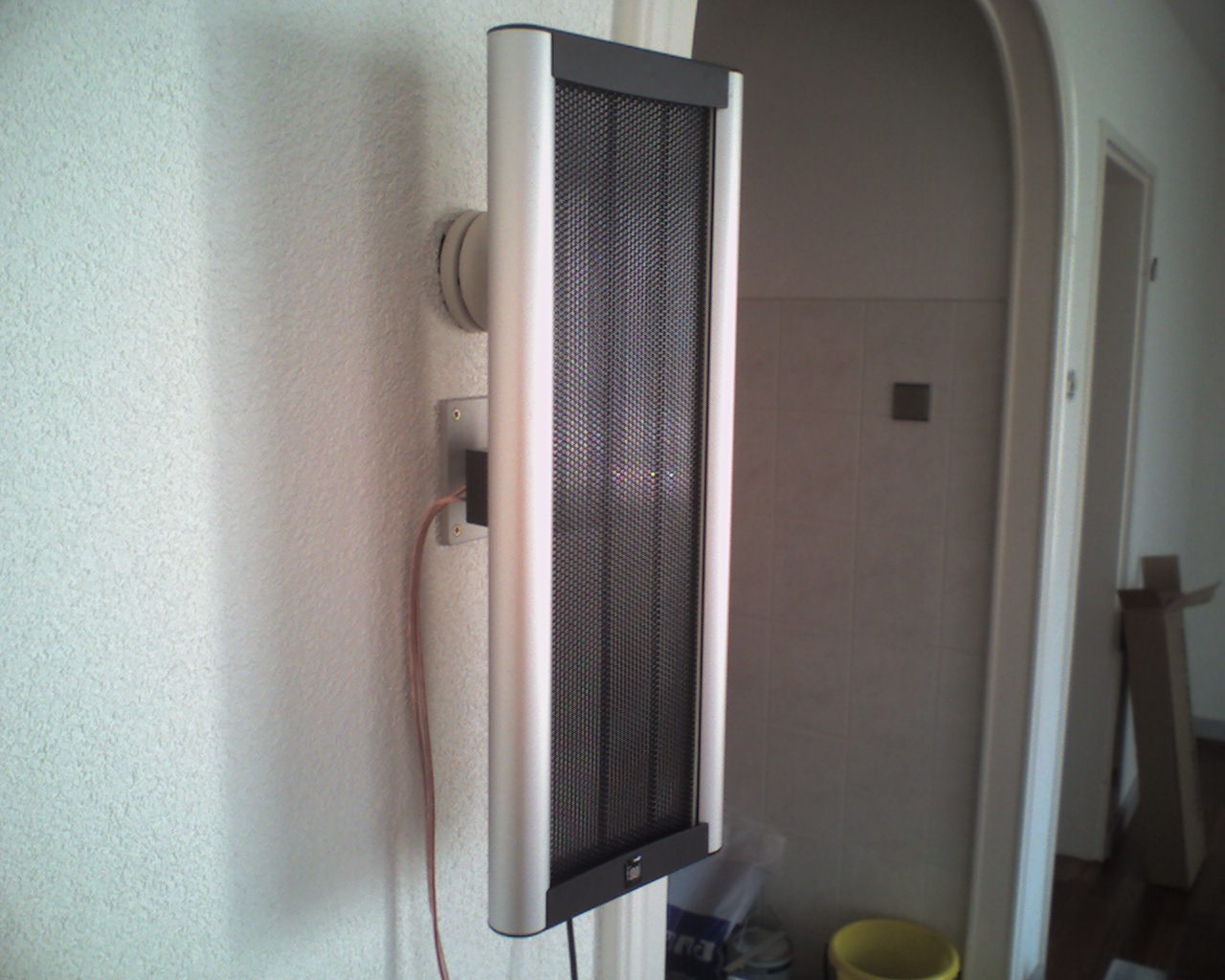 Dat zijn electrostaten die je zoekt...He, ik ben op zoek naar een topic over een apart soort speakers. Die werkten met veel ijzerdraadjes over een groot oppervlak gespannen met een hoge spanning (oid).