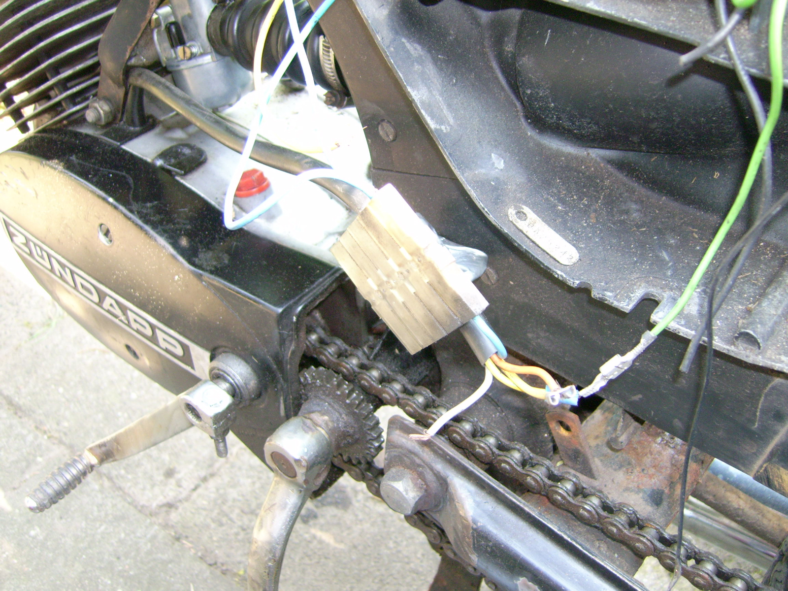 De brommer zelf heeft geen accu, het is aantrappen en lopen. De stroom die gegenereert word is behoorlijk onstabiel (piekt constant richting de 18V in stationair) en gaat op dit moment rechtstreeks naar de bougie en de lampen. De stroom die richting de lampen gaan wil ik dus stabiliseren met een elco
