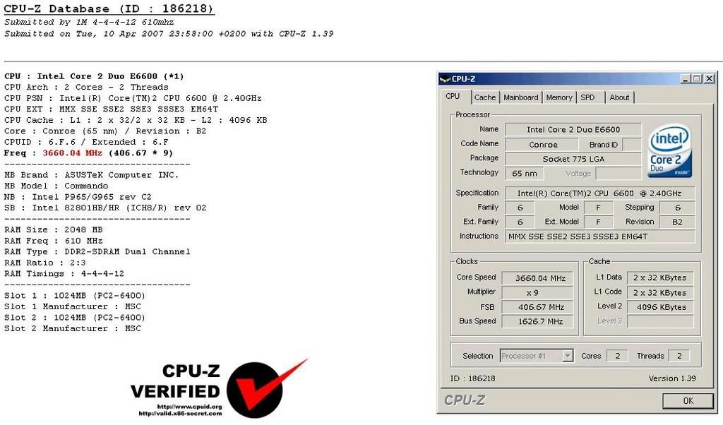 Vcore: 1.45V (CPU stabiel tot 250 MHz, getest met lagere RAM divider)