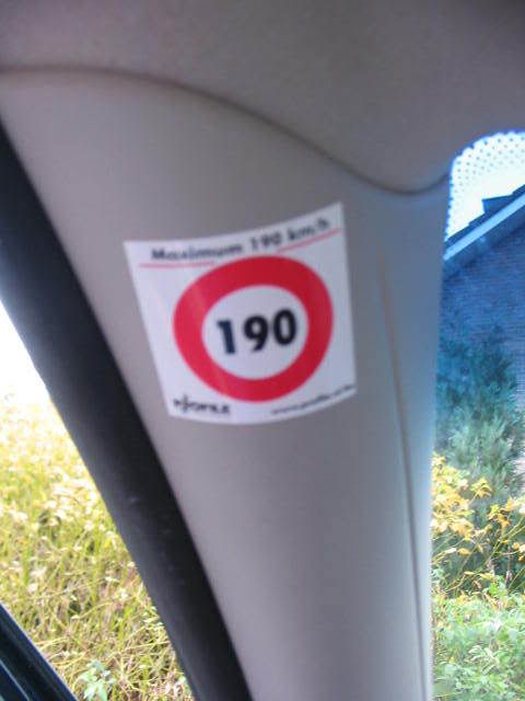 Ik heb overigens ook voor banden met de H-index gekozen, eigenlijk simpelweg omdat de auto die nodig heeft wat betreft topsnelheid ... of 't nou ook één index lager mag zijn interesseert met verder niet zoveel eigenlijk. Ook ben ik blij dat ik dan door Duitsland tenminste niet met zo'n verschrikkelijke sticker voor m'n neus hoef te rijden
