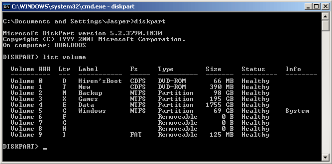 Partition Magic 8.05 en Diskpart zijn beiden blind: