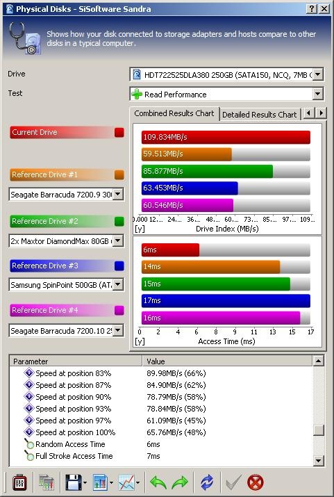 Wat ik getest heb is een Raid0 Array bestaande uit twee 200GB Seagate 7.10 Barracuda's op een Intel ICHR9. Ik heb getest met Atto-256 en benches gedraait met 128K stripe en 32K Stripe.
