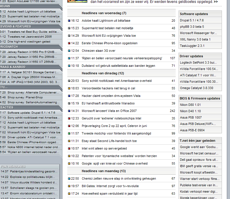 En dan de grote van de lijst van nieuwslinks van vandaag, gisteren, etc. De ruimte tussen de nieuwslinks vind ik te klein waardoor het allemaal nogal volgepropt toont. Met een line-height van 20px op .b7 in de CSS is het al wat opener: