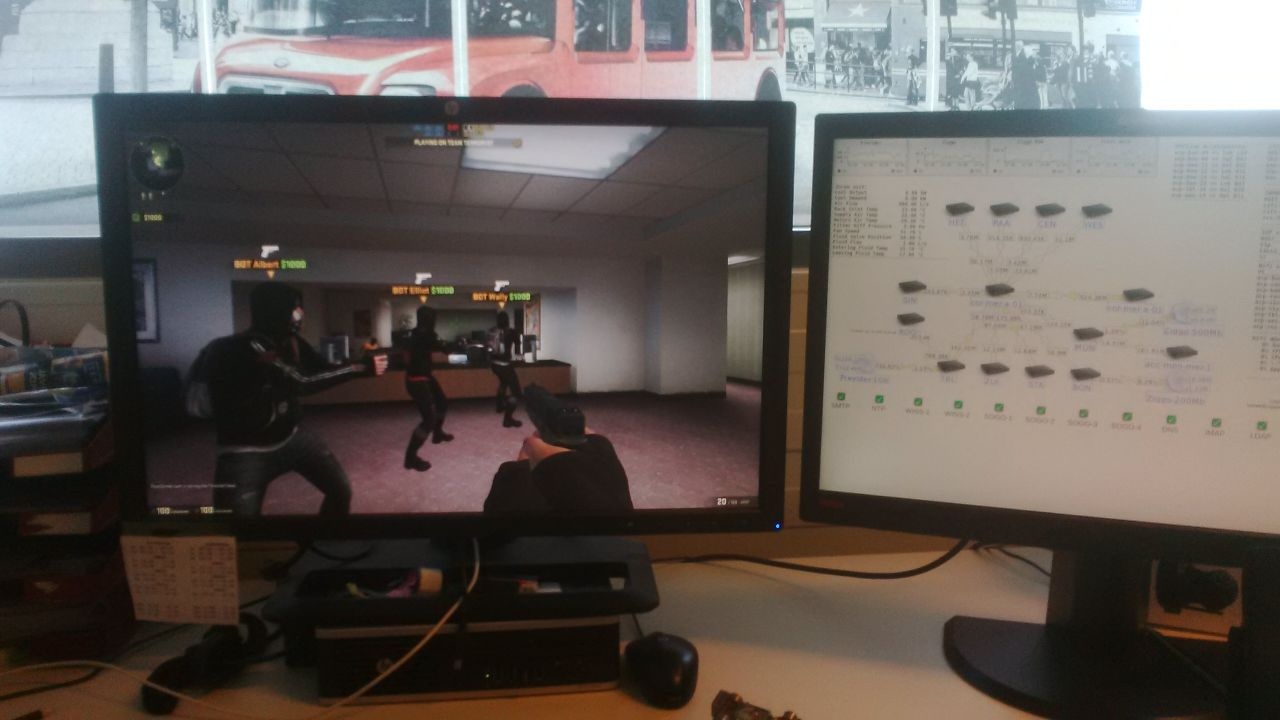 dus ik moest testen of de clients geschikt zijn voor CS:GO, vond het compleet onspeelbaar, dus dat wordt het niet. Heb daarna CS:S geteste, en dat werkt prima op de werkstations.