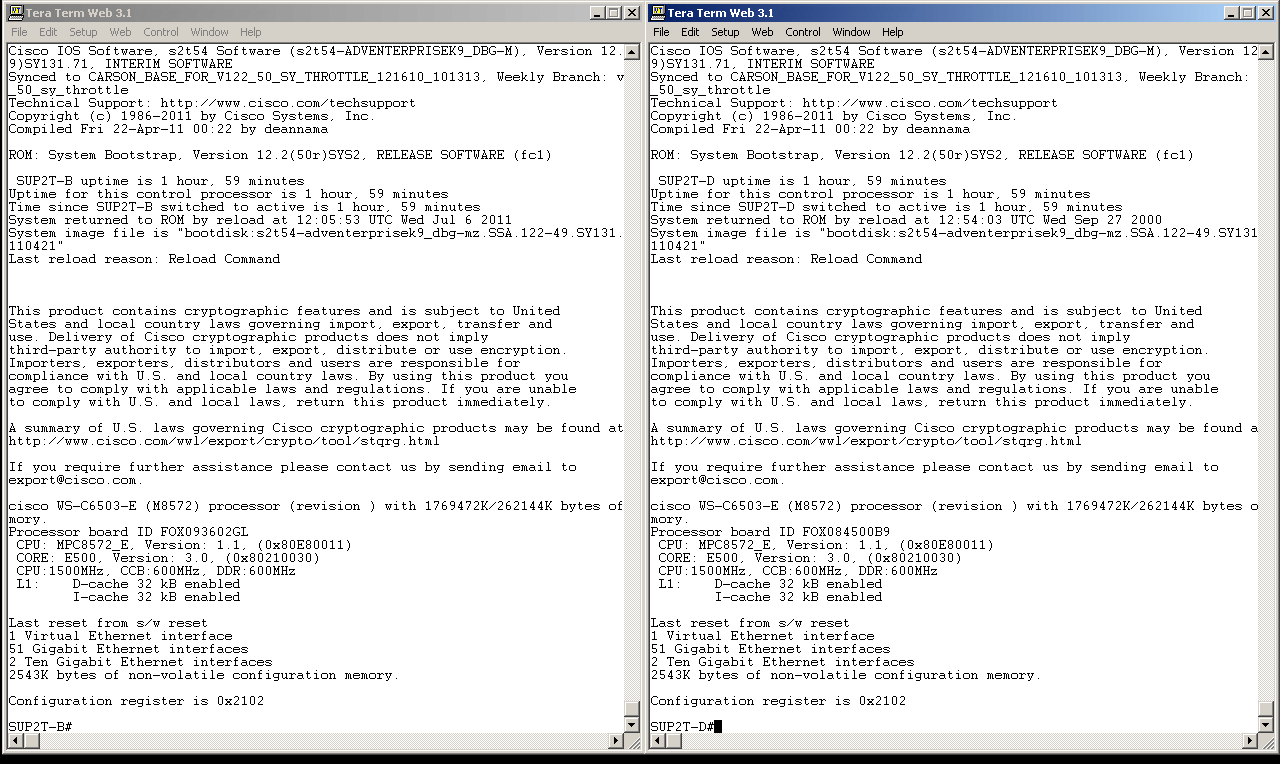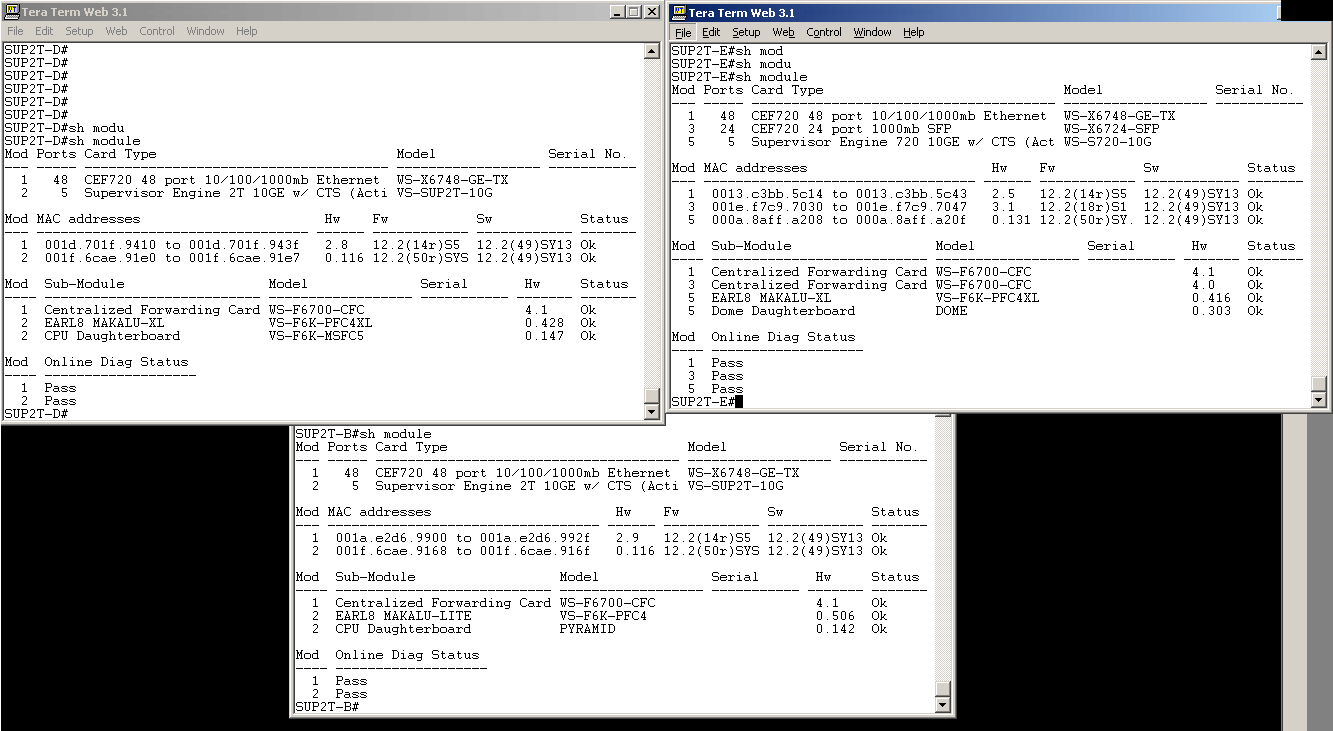 Een tijdje terug was ik bij een 6500 update sessie en heb daar m'n visitekaartje achtergelaten bij een product manager van de 6500. Heb nu een inlog voor een Cisco GOLD lab. Vandaag ff zitten spelen met drie 6500 switches
