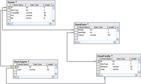 Ah een lookup table. Dus je hebt voorgedefinieerde form elements en je hebt een tabel met instances van die elements? Waar heb je dan de nieuwe attributes nodig? De voorgedefinieerde form attributes zijn fixed, want ze representeren objects in code. De instances zijn gewoon rows in een table, dus ik zie het niet echt waar je speciale zaken nodig hebt, omdat dit gewoon een basic tabel opzet is.