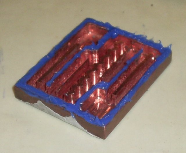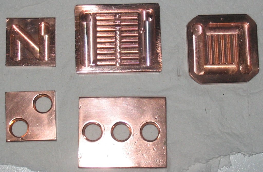 het geheugenkoelblok bestaat uit 3 losse koperplakjes verbonden met koperen buisjes, is het nu slimmer om dit uit een stuk te maken, dus zo:
