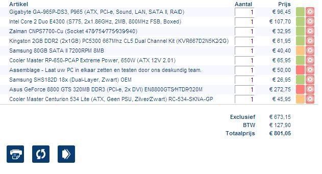 Zoals je kan zien zit ik net binnen mijn budget, en ik wil er eigenlijk niet overheen, dus als jullie verbeteringen weten binnen de prijs, bedankt. Ik wil vooral weten of een 8800GTS het wel waard is als ik op alle andere onderdelen in moet leveren.