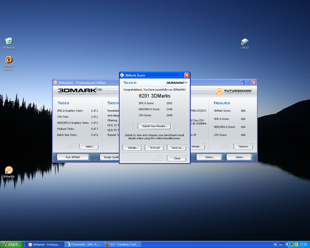 Echter... (ik had dit al meerdere malen geprobeerd,nieuwe drivers en alles, Gfx overclocked geinstalleerd niets hielp) kreeg ik na het overclocken van de cpu bij 3dmark06 alleen nog maar de helft van het aantal punten dan dat ik had voor de oc...Dus eigenlijk aan jullie de vraag wat hier de oorzaak van kan zijn. Ik heb wat gezocht daar de cpu scores van E6750 en die zijn vrij wel gelijk aan wat die van mij scoort... dus daar zou het niet aan moeten liggen.