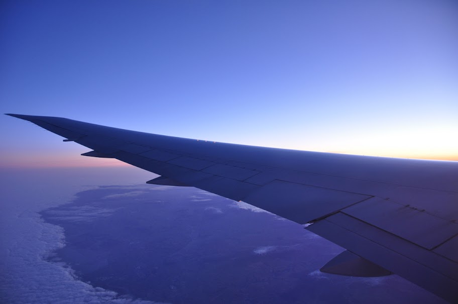 De lucht richting de landingsbaan war erg donker grijs en de andere kant op was het gewoon blauw. Dus daardoor is de lucht zo grijs