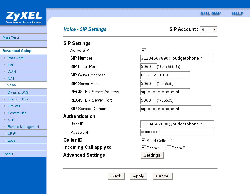 Ik heb al een tijdje een budgetphone account (welke dus SIP heeft) en deze wil ik nu aan de modem hangen.