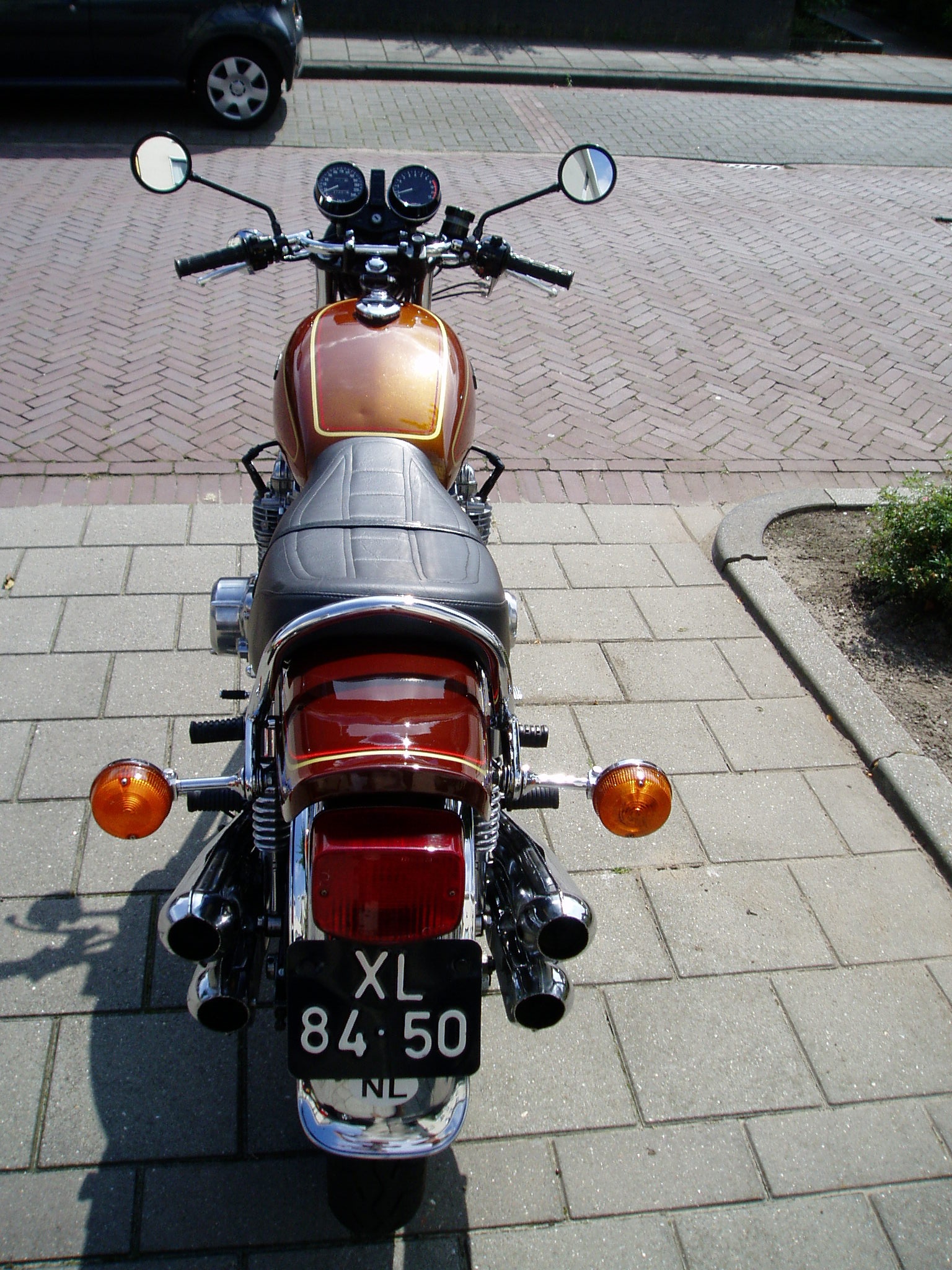 Mn vader had er een stukje op gereden en die vond het allemaal erg heftig reageren. Als je gas gaf ging de motor er vandoor, en als je remde, dan stond je zo stil! Hij is kennelijk anders gewend met zn BSA uit 1944 waar alles nog van gietijzer is. Maar geen rare dingen tijdens het rijden, de motor zag er erg netjes uit. Alles was schoon, alleen de banden waren niet echt in topconditie, en de onderhoudshistorie moest hij nog krijgen van de vorige eigenaar. Gezien de prijs die de handelaar ervoor vraagt overweeg ik de motor te kopen, want een gele zie je niet vaak, en deze zag er echt netjes uit.