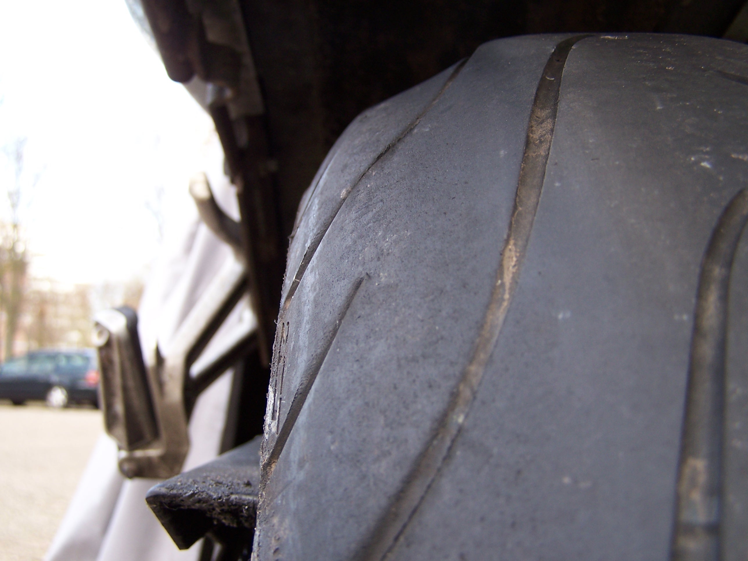 Binnenkort even in de kleding duiken. Jas en laarzen mogen vervangen worden. Maar op nummer één staat de achterband. Op veel plekken is het profiel al niet meer te voelen.![]()