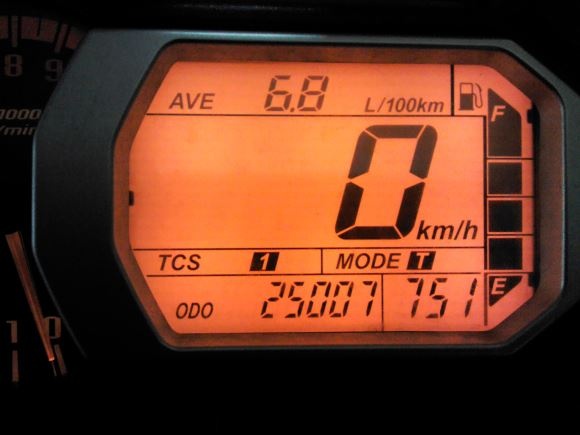 Met uitlaat eronder is het geluid een stuk schappelijker iig. Qua rijden blijft het wennen - veel betere gewichtsverdeling dan de K75, maar het stuurt minder, en op hoge snelheid is het veel minder koersvast. Op snelheden tot 80km/u rijdt dit ding duidelijk prettiger/lichter/makkelijker, stukje filerijden rond Amersfoort was bijna een plezier te noemen, maar boven de 110km/u is het zwaar werken, vol in de wind en bij ieder stootje heeft hij weer de neiging opzij te gaan. Eerste tank (zonder uitlaat gereden) was ook een niet al te indrukwekkende 1:16.8