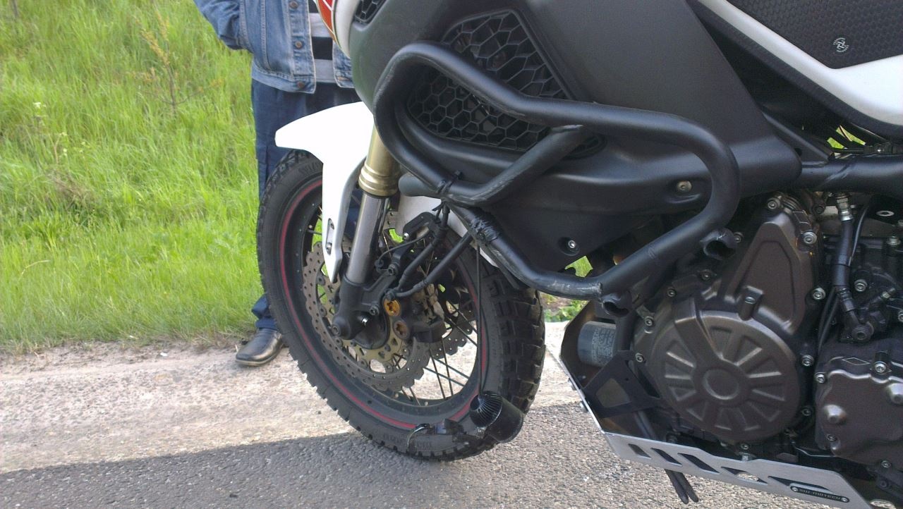 ),... Ik denk dat m'n scheenbeen daar tussen het koekblik en m'n valbeugel heeft gezeten, daar begon ik tijdens het wachten uiteindelijk het meeste schrik voor te krijgen, dat begon echt enorm op te zwellen. Schouder begint nu ook wat pijn te doen. Maar ik heb er al ervaring mee, morgenvroeg wordt het echt leuk