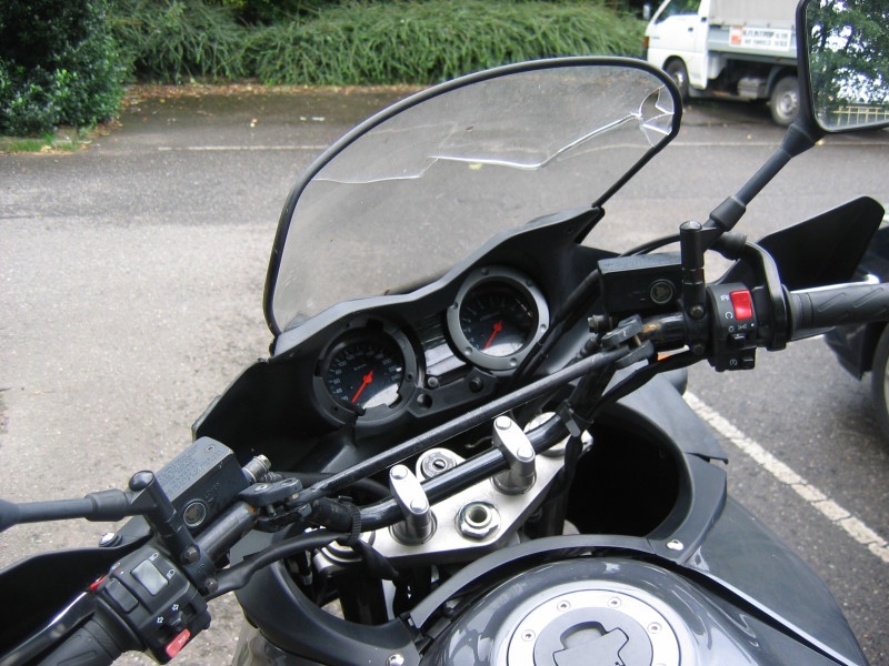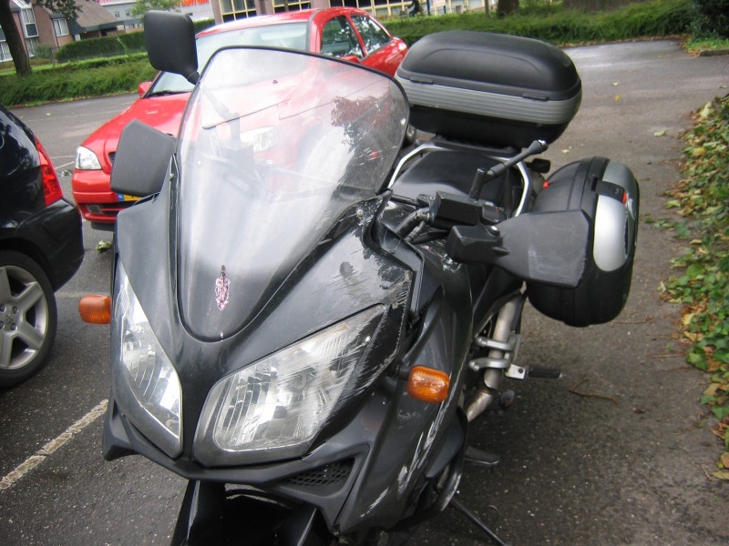 mjah, ik weet het niet precies,maar ik kon op de een-of-andere manier een te suffe bocht niet halen, geen scherpe bocht ofzo, en ik raak met m'n wiel precies de plek waar het asfalt samenkomt bj de oprit van de snelweg, en nu ben ik dus wat onderdeeltjes kwijt, en uiteraard m'n rots![]()