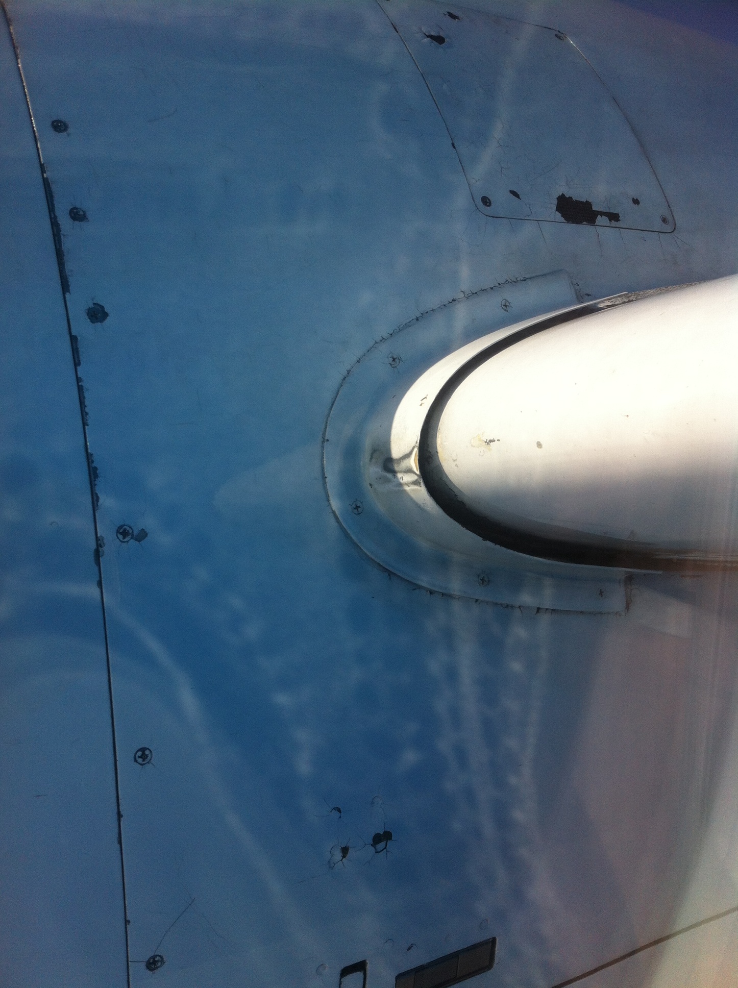 Dat weet ik maar zeg nou zelf, rond dat ovale plaat lijkt het net of het metaal op het punt staat af te breken. Nu weet ik dat het alleen maar lak verf is en dat de veiligheid niet in gevaar komt maar kan me voorstellen dat dat iemand met vliegangst zich niet prettig voelt bij het zien van dit oppervlak. Alhoewel ik zelf geen vliegangst heb en zelfs van vliegen houd had ik geen prettig gevoel.