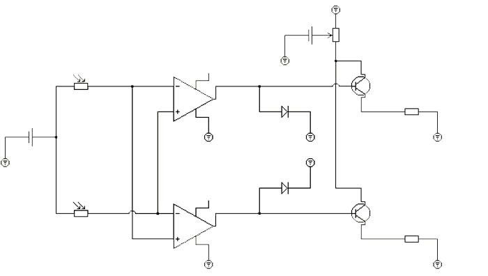 Ik heb een simpel schema uitgetekend aan de hand van lichtweerstanden, in de loop van de avond zal ik deze online zetten. Ik kom er nu even niet aan toe!