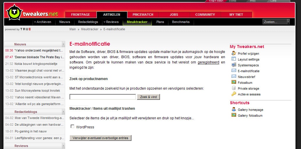 Meuktracker e-mail notificatie. Zo ook voor totaal verouderde hardware of