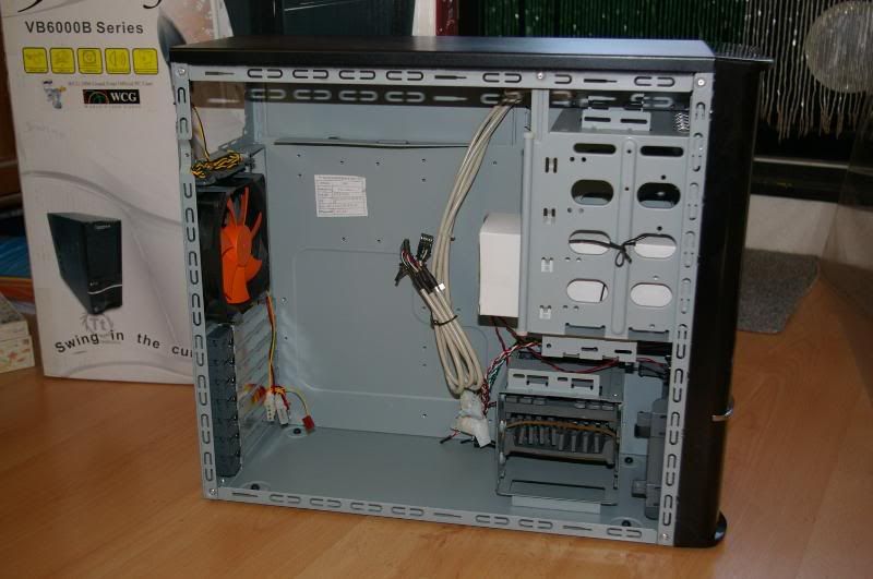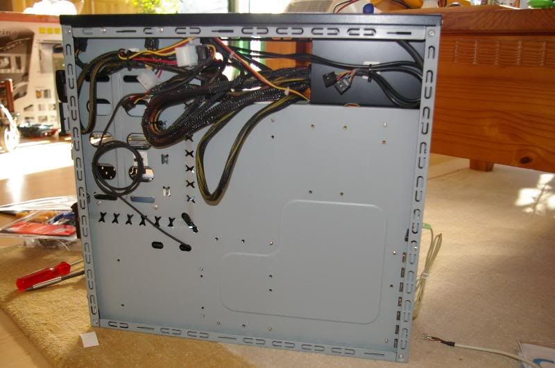 Alle hardware uit de oude pc overgezet. Deze kast heeft achter het rechter paneel en de moederboard plaat 1 cm ruimte. Ideaal om die altijd veel te lange voedings kabels achter te verbergen.