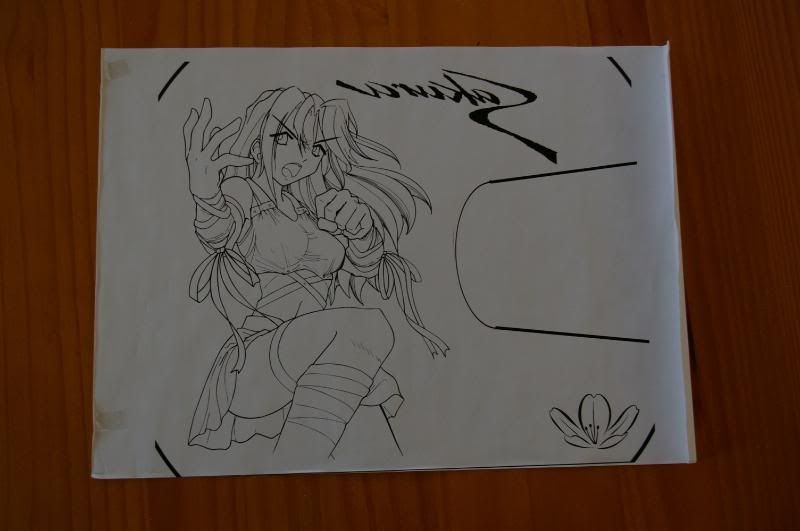 In het window wil ik een gravure maken die ik blauw ga verlichten. Eerst dus een leuk onderwerp zoeken, en uiteraard mijn nick. Het geheel zo goed als nodig opgepoetst en in spiegelbeeld op A3 formaat uitgeprint.