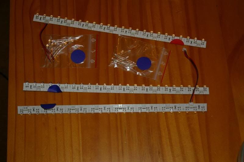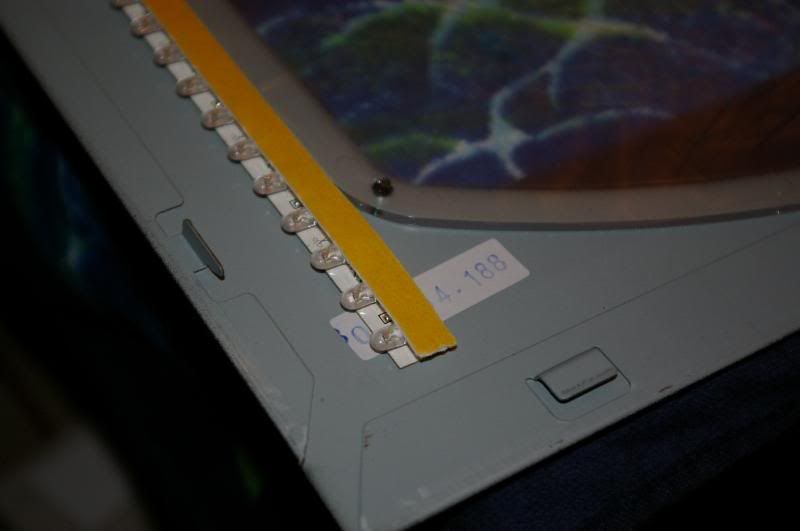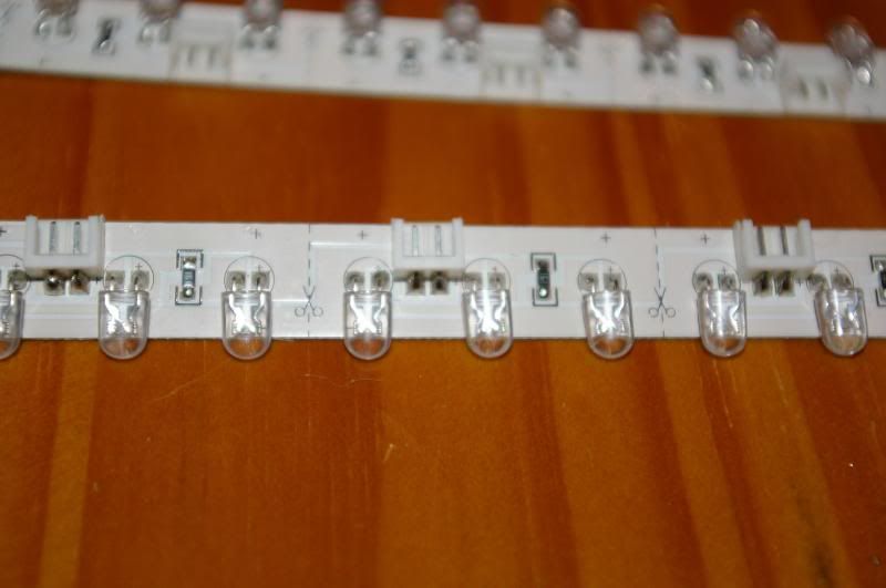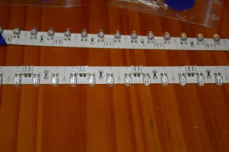 Omdat bij de Swing het plexiglas half verzonken is, heb je als zijkant dus niet de 4 mm dikte om te vverlichten, maar slechts 2mm. Heb dus alle ledjes wat extra naar beneden gebogen zodat ze strak tegen het metaal aan zitten.