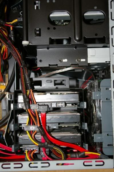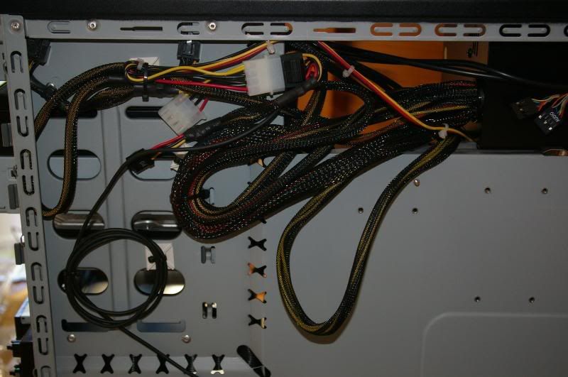 Sata kabels heb ik onder het HD rek door laten lopen, hoe meer kabels uit het zicht hoe beter. Dat blijft het nadeel van een window, je moet de binnenkant van je kast ook opruimen