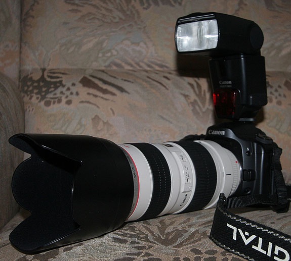 Er zit inderdaad een PC-to-hotshoe adapter tussen, deze heb ik samen met het kabeltje én de parapluhouder van