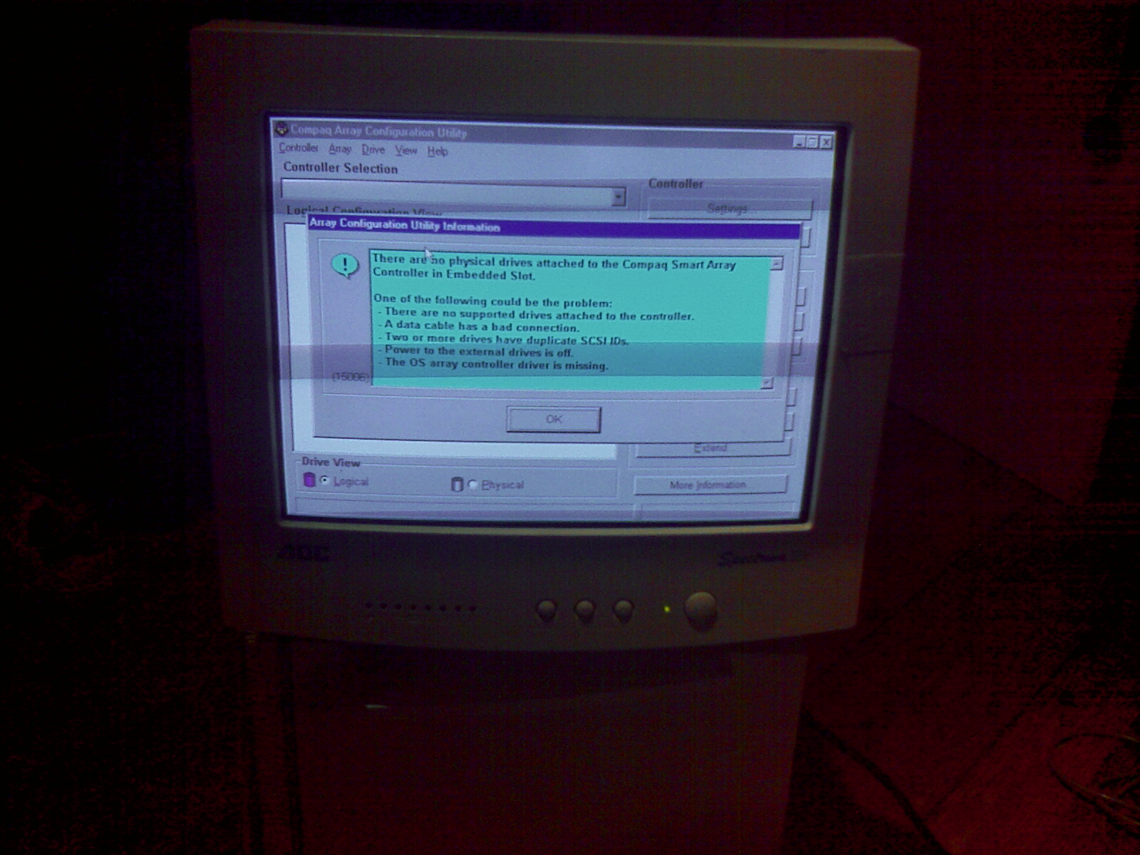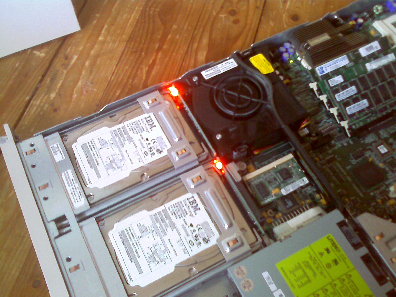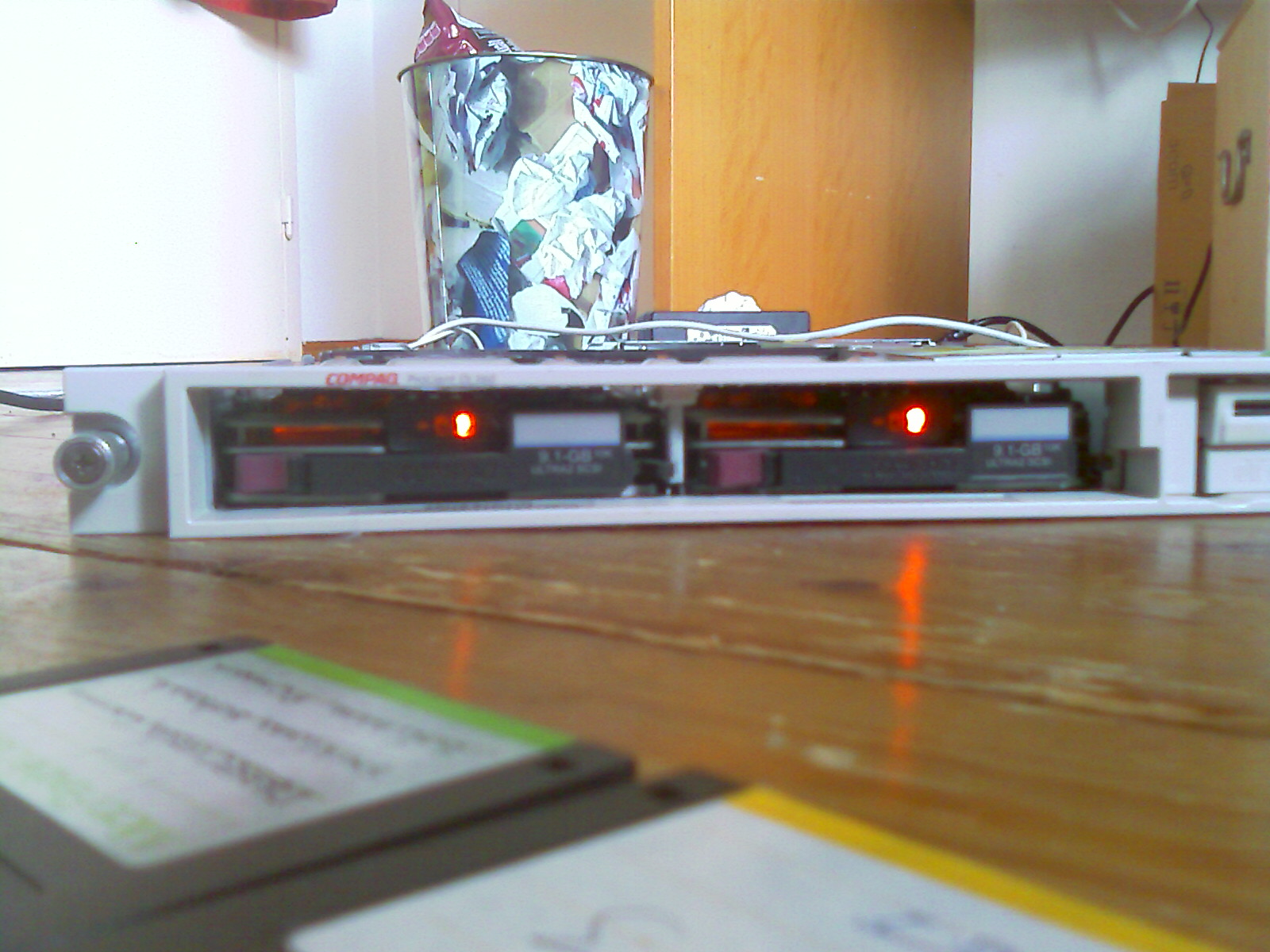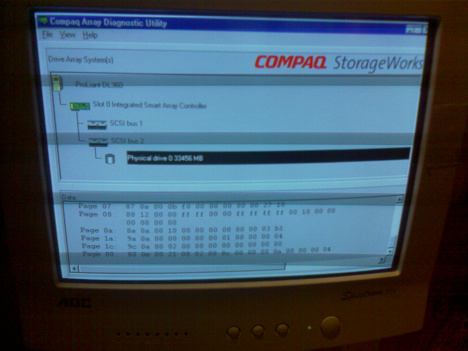Nu heb ik ze in mijn server gedaan (Compaq DL360 Generatie 1) en na een spin up van de hardeschijven krijg ik meteen het tonnetje met het kruisje erdoorheen: