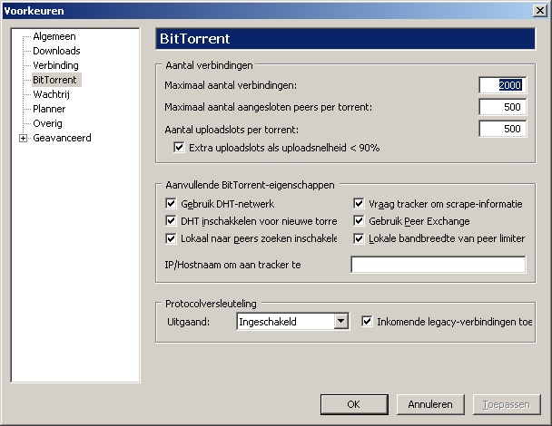 Port mapping functions in uTorrent: uitgeschakeld