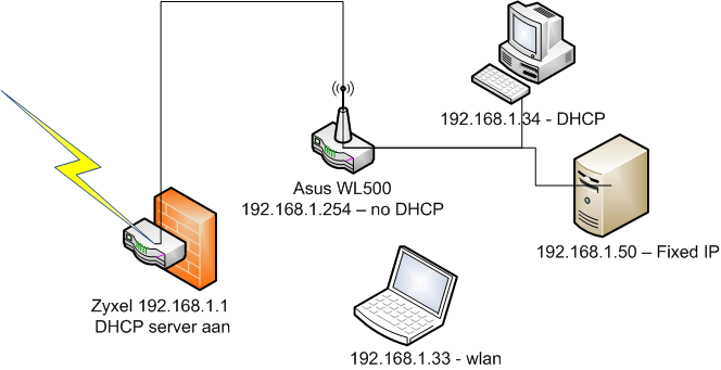 Tot zover goed, ik wil echter met meerdere PC's op het internet, dus heb ik een ASUS WL-500W router aangeschaft.