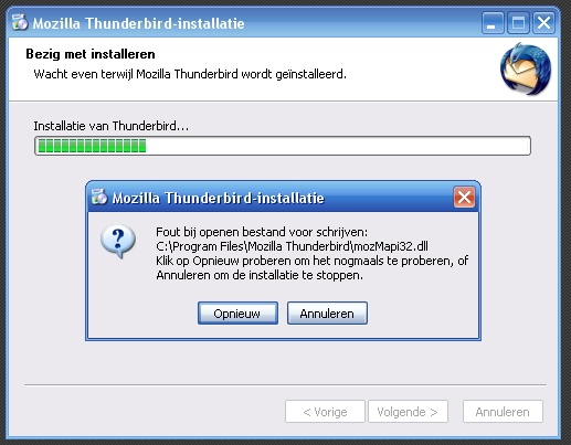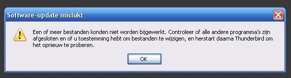 Ik heb sinds een paar dagen een probleempje met de mailclient Thunderbird. Sinds de laatste update die werd doorgevoerd mislukt steeds de update installatie. Zie screens: