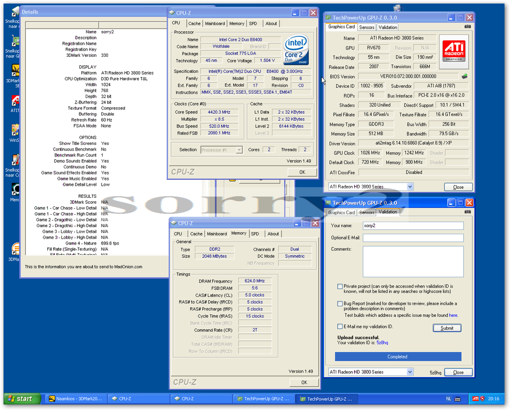 Nette score, maar wat is de reden dat je een Xeon E3110 op 2GHz ipv 3GHz draait? Of dat een bug in CPU-Z?