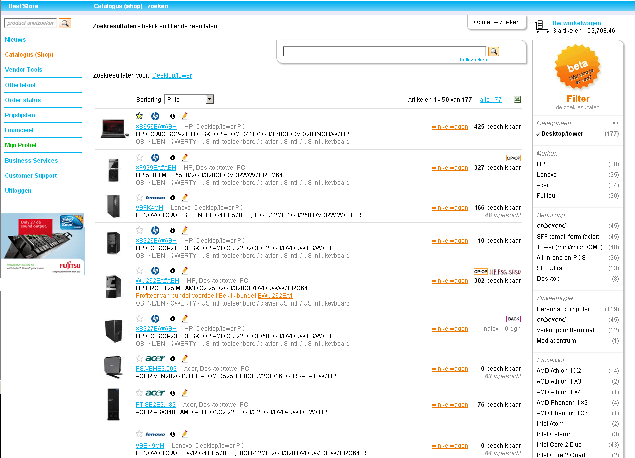 Zoals ik net al aan de telefoon meldde aan PcDealer hebben wij een grote verbetering doorgevoerd op het gebied van categorisering. De mogelijkheid om te verfijnen gaat verder dan tot nu toe was en is toegespitst op de productgroep.