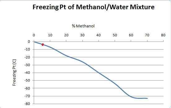 methanol met (gedistilleerd/gedemineraliseerd) water is het beste, word op mijn werk ook veel gebruikt (offshore)