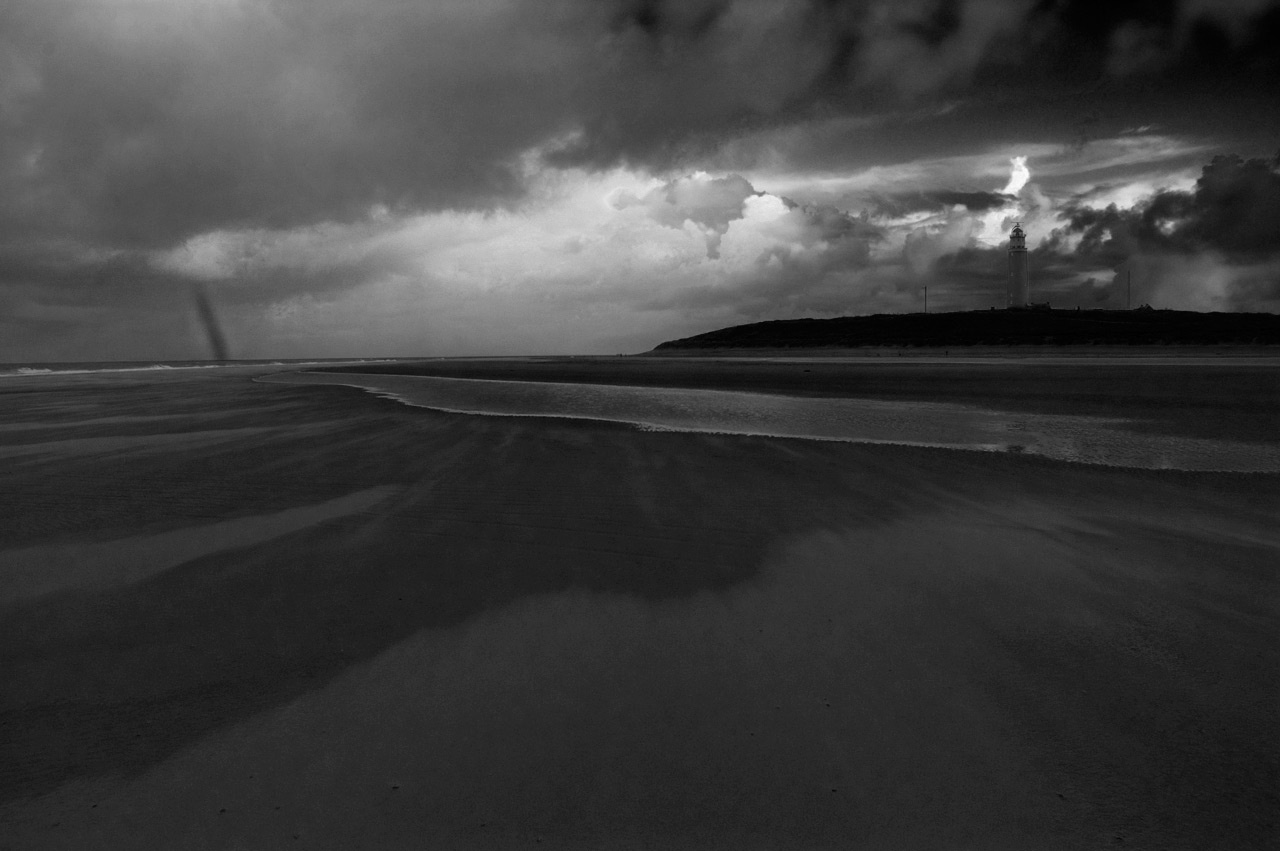 Hij is wel heel erg donker. Denk dat het de foto goed zou doen als je hem wat lichter maakt, volgens mij kun je hier zeker een mooie plaat uithalen. Je ziet mooi het zand dat over het strand waait.