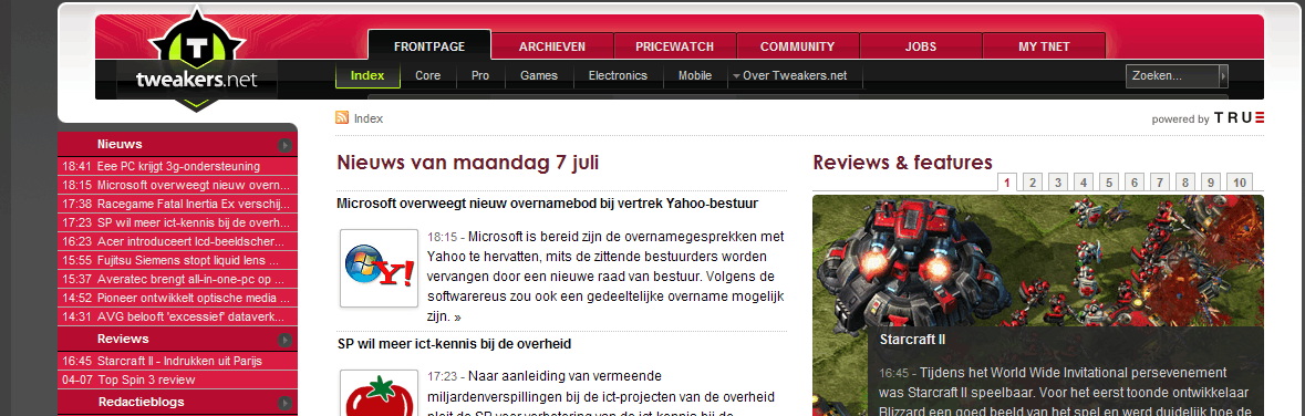 Ik vind de website op zich uitstekend zo, stukken beter zelfs dan de '1.0' versie van T.net. Het is een mooi stijlicoon dat de roodzwarte balk bovenin nog steeds rood-zwart is (was ie bij de eerste 2.0 trouwens ook, maar dat terzijde). Ook dat felgroen springt er lekker uit.