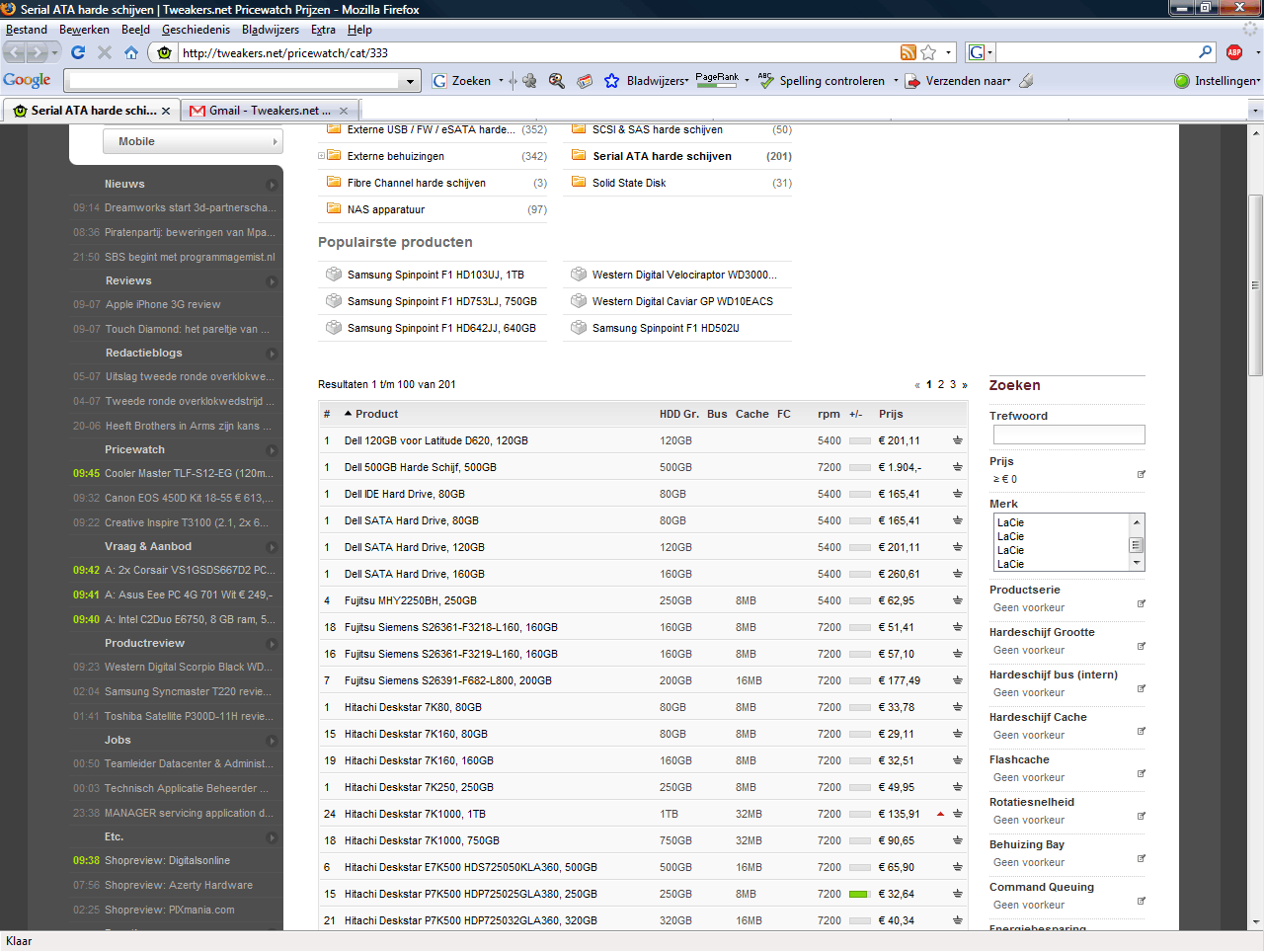 Voor de duidelijkheid; ik klikte bovenaan op Pricewatch, en toen rechts op harde schijven, en toen middenboven op SATA. De url was