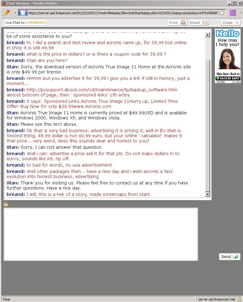 Zie hier de screencap van het online gesprek, men ik was pissed off.
