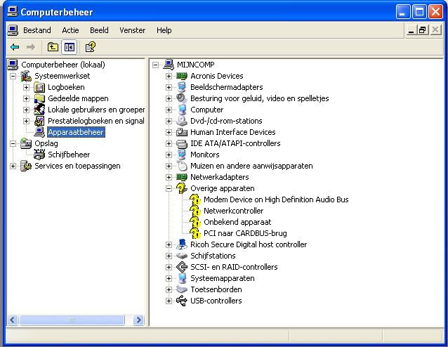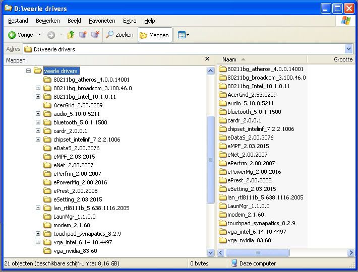 Ik heb alle drivers voor XP bij acer gedownload en zo ver mogelijk geinstalleerd